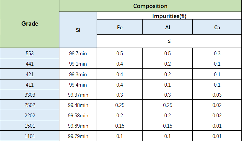 Silicon metal also known as crystalline silicon or industrial silicon, is mainly used as an additive to non-ferrous based alloys. Metal silicon is a product made of quartz and coke in an electric furnace. The content of silicon in the main component is about 98% (including 99.99% of Si is also contained in metal silicon), and the other impurities are iron, aluminum, calcium, etc. .
